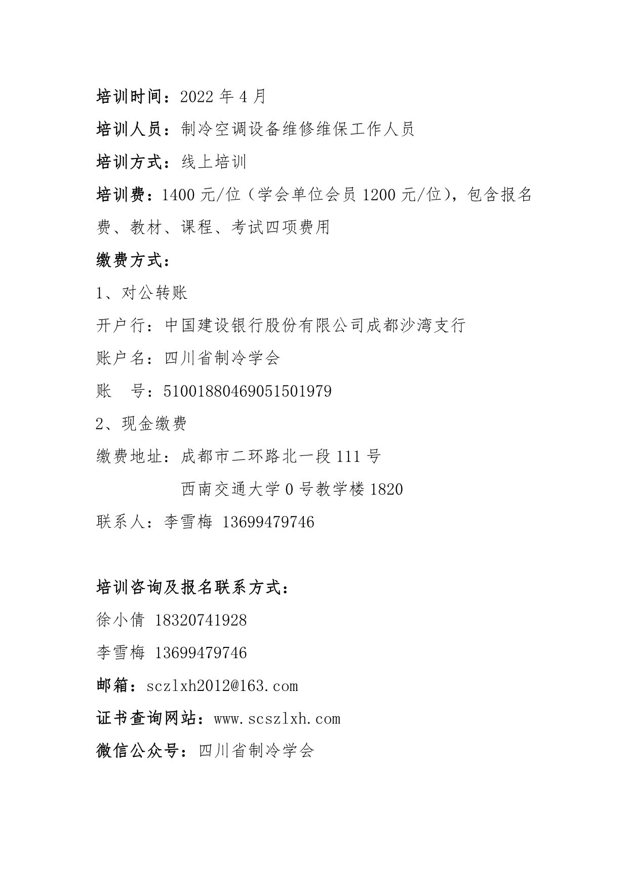 關(guān)于舉辦“第七期四川省中央空調(diào)維修維保技術(shù)人員培訓(xùn)”的通知