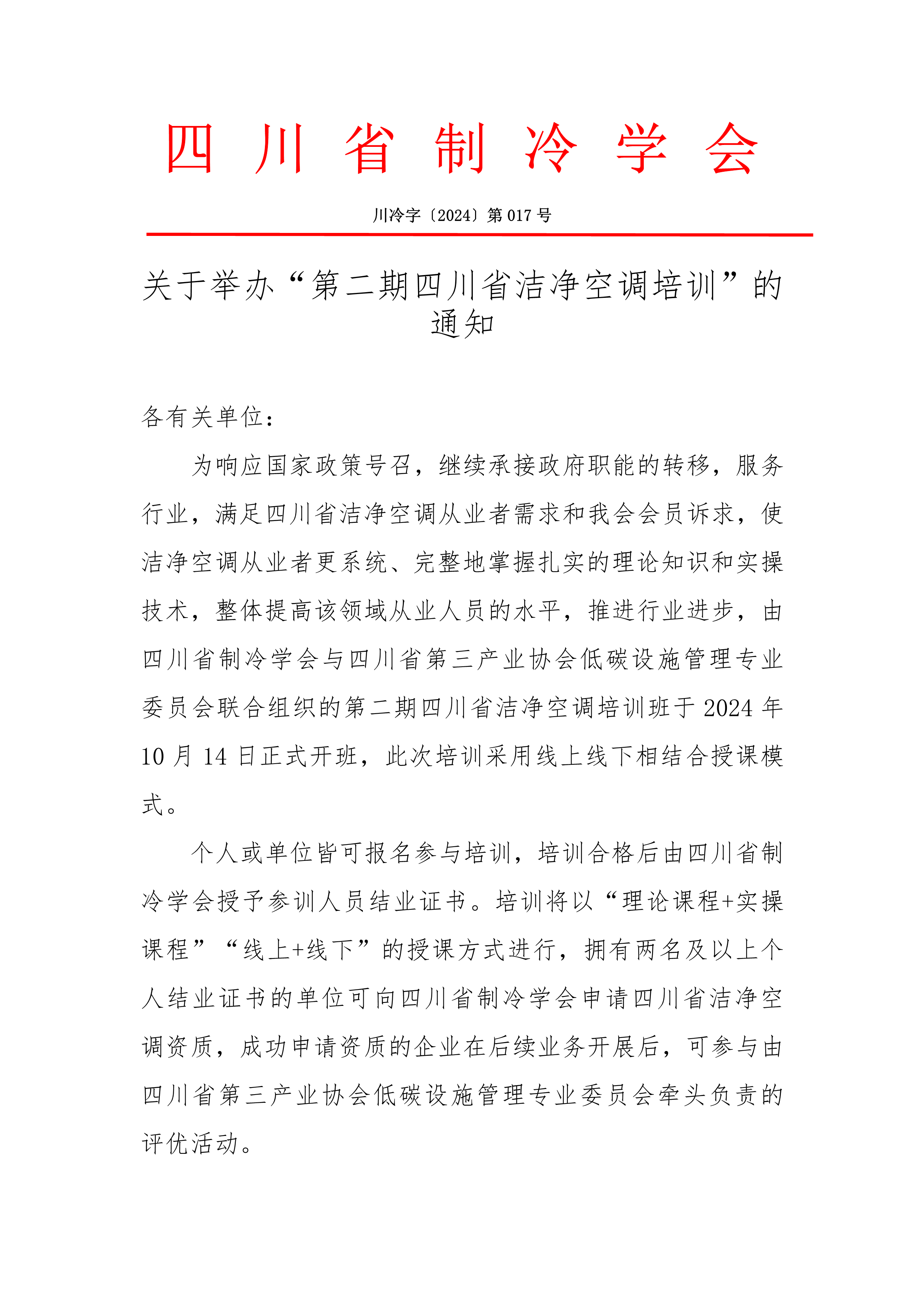 關于舉辦“第二期四川省潔凈空調培訓”的通知