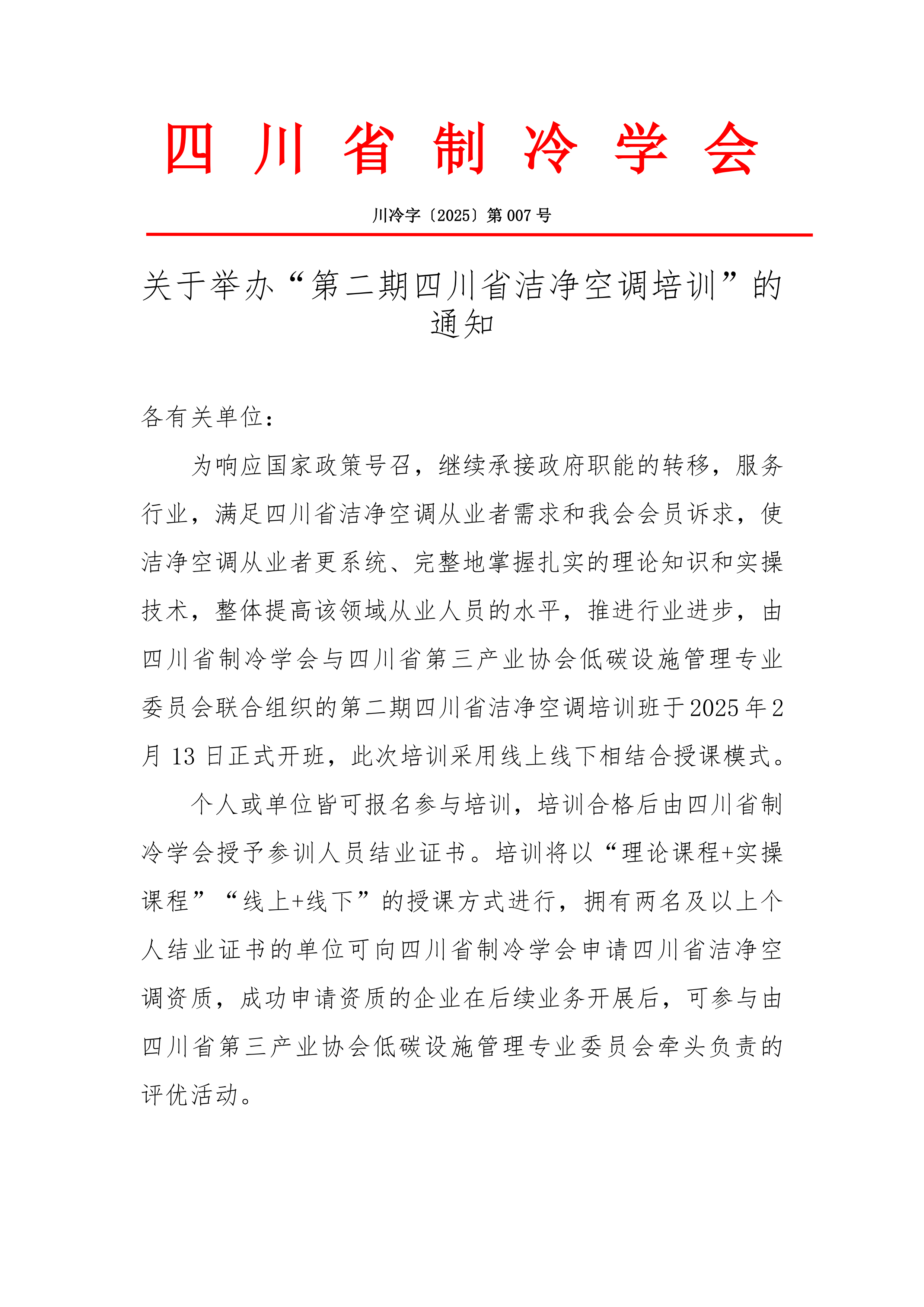 關于舉辦“第二期四川省潔凈空調培訓”的通知