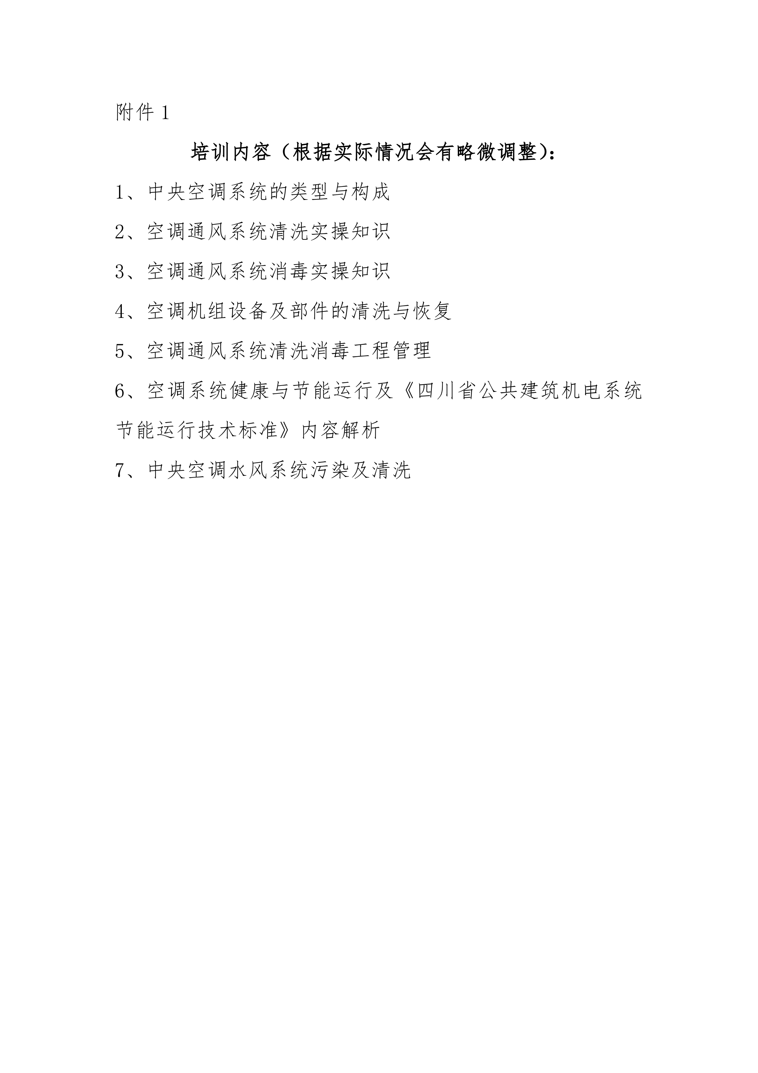 關于舉辦“第十七期四川省空調通風系統專業清洗培訓”的通知