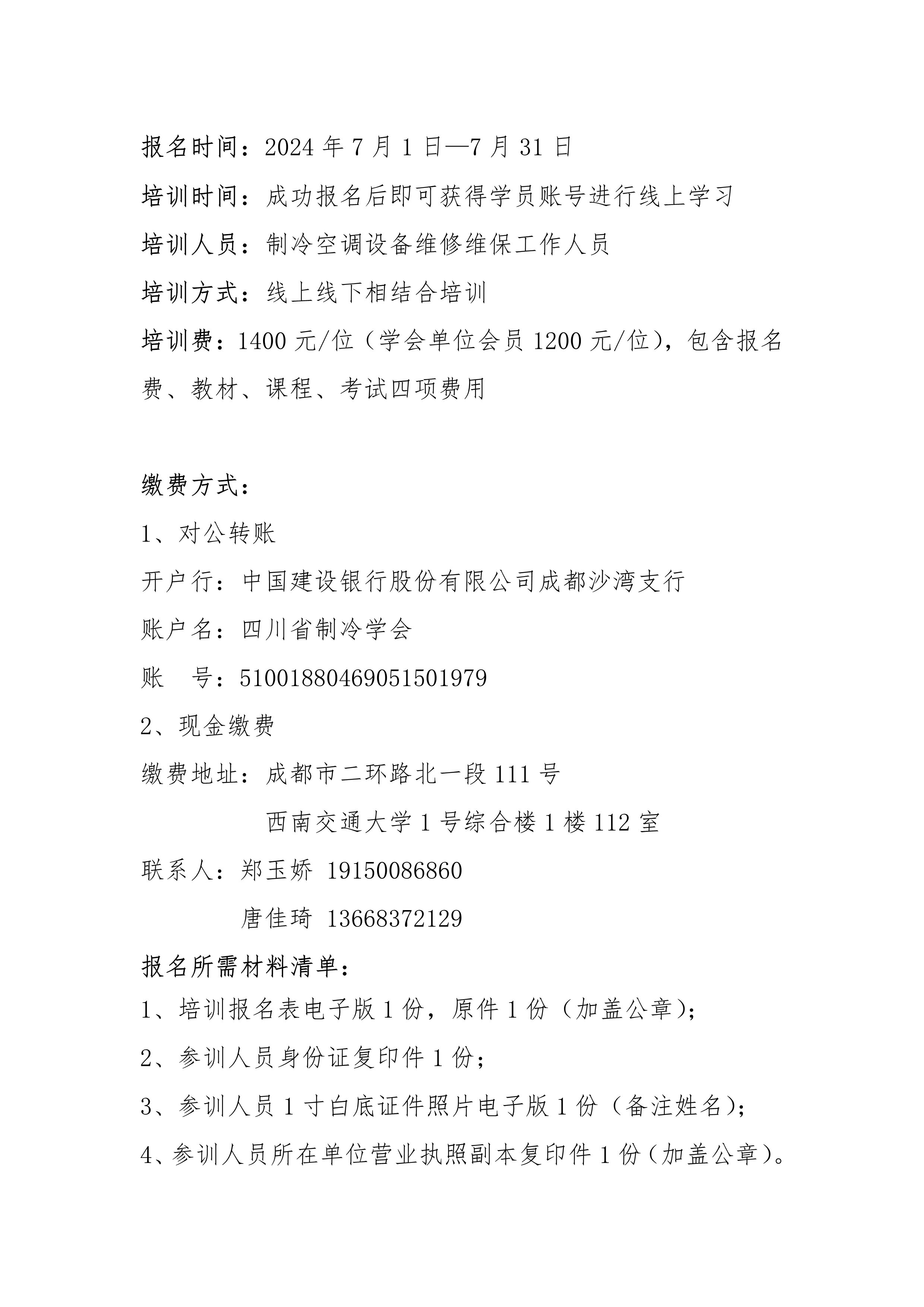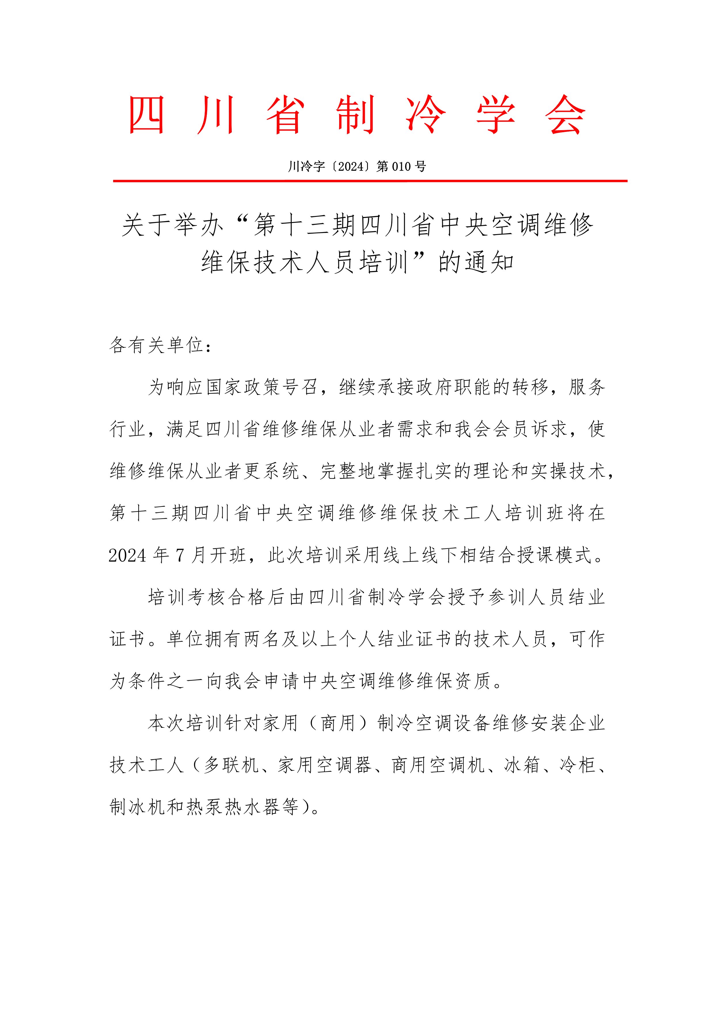 關于舉辦“第十三期四川省中央空調維修維保技術人員培訓”的通知