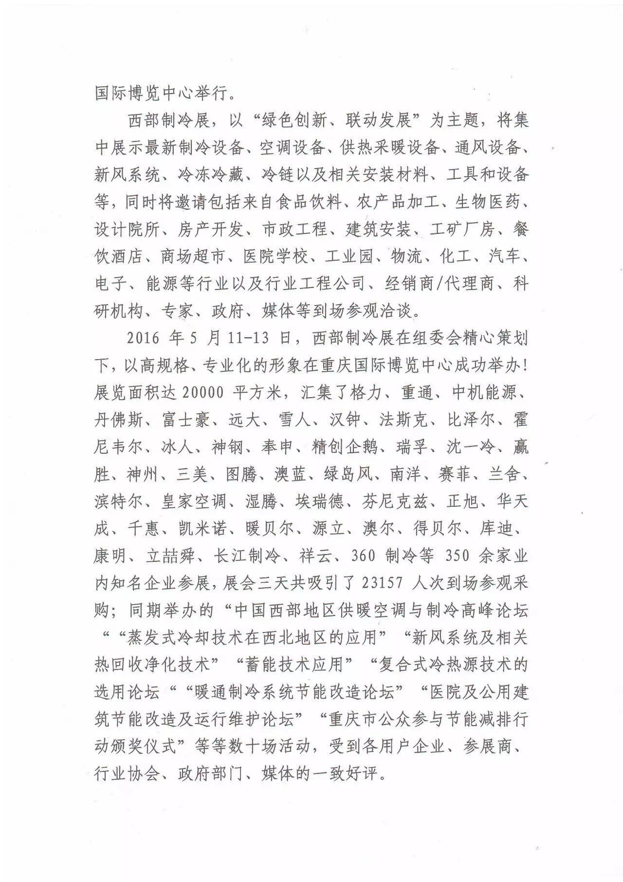 關(guān)于邀請(qǐng)請(qǐng)參加“2017第三屆中國(guó)西部國(guó)際制冷、空調(diào)、供熱、通風(fēng)及食品冷凍加工展覽會(huì)”的函