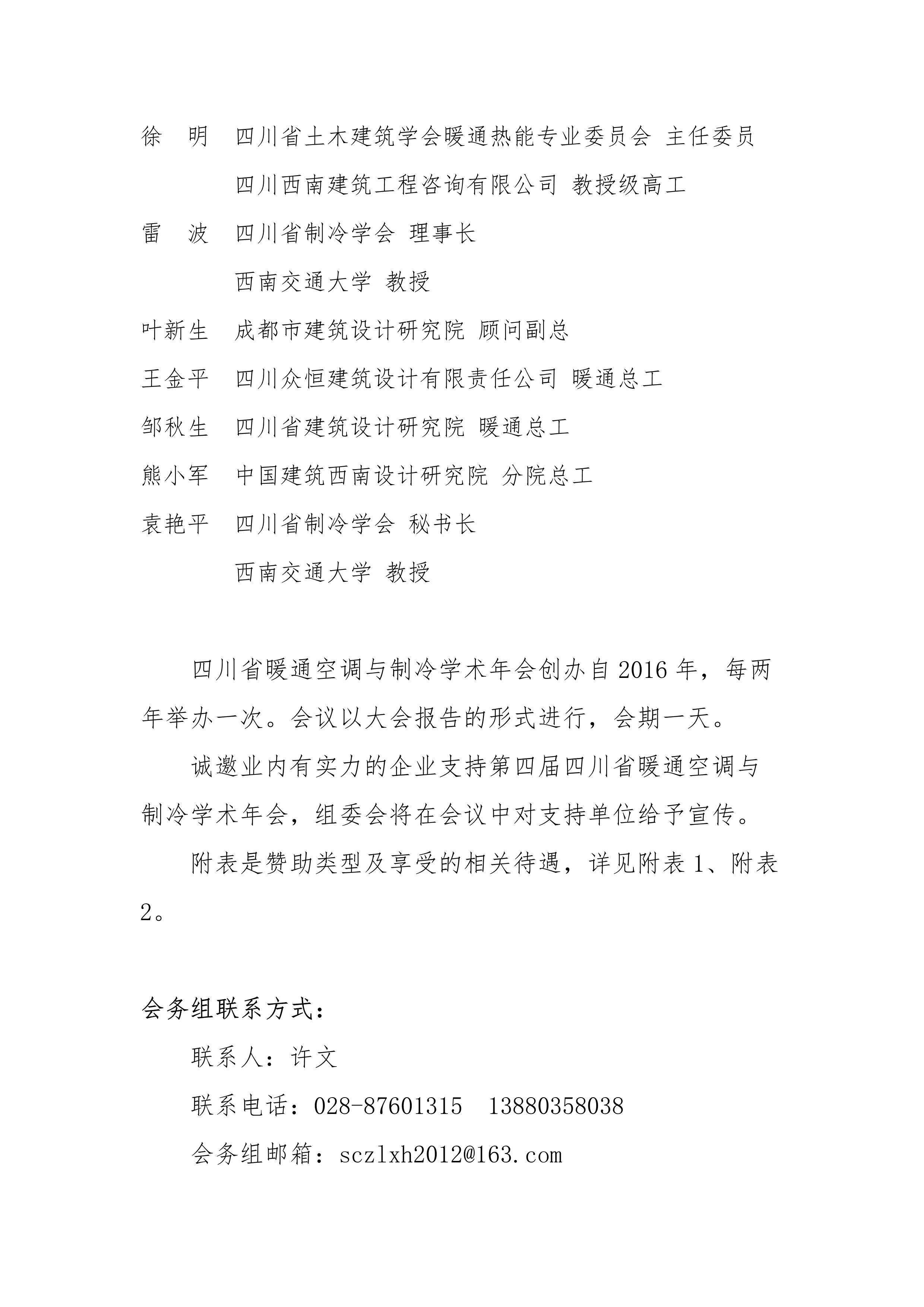 第四屆四川省暖通空調與制冷學術年會預通知
